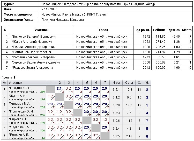 27.12.2025 г., 5й годовой турнир по пинг-понгу памяти Юрия Пичугина, 4й тур